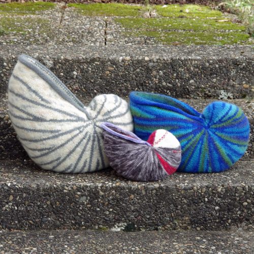 Strickpaket: Nautilino und Nautilus – Strickfilz – Schneckenkissen klein und groß – Snail-Pillows small and big – Deutsch und Englisch