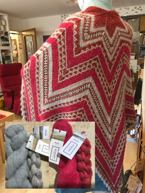 Strickpaket: „Starfish“ Happy Ringlets – Metalico & Prairie – Blue Sky Fibers – Alpaka & Seide – Kit aus Garn und Anleitung – Nadel 3.75 – Tuch/ Schal/ Umhang/ Stola