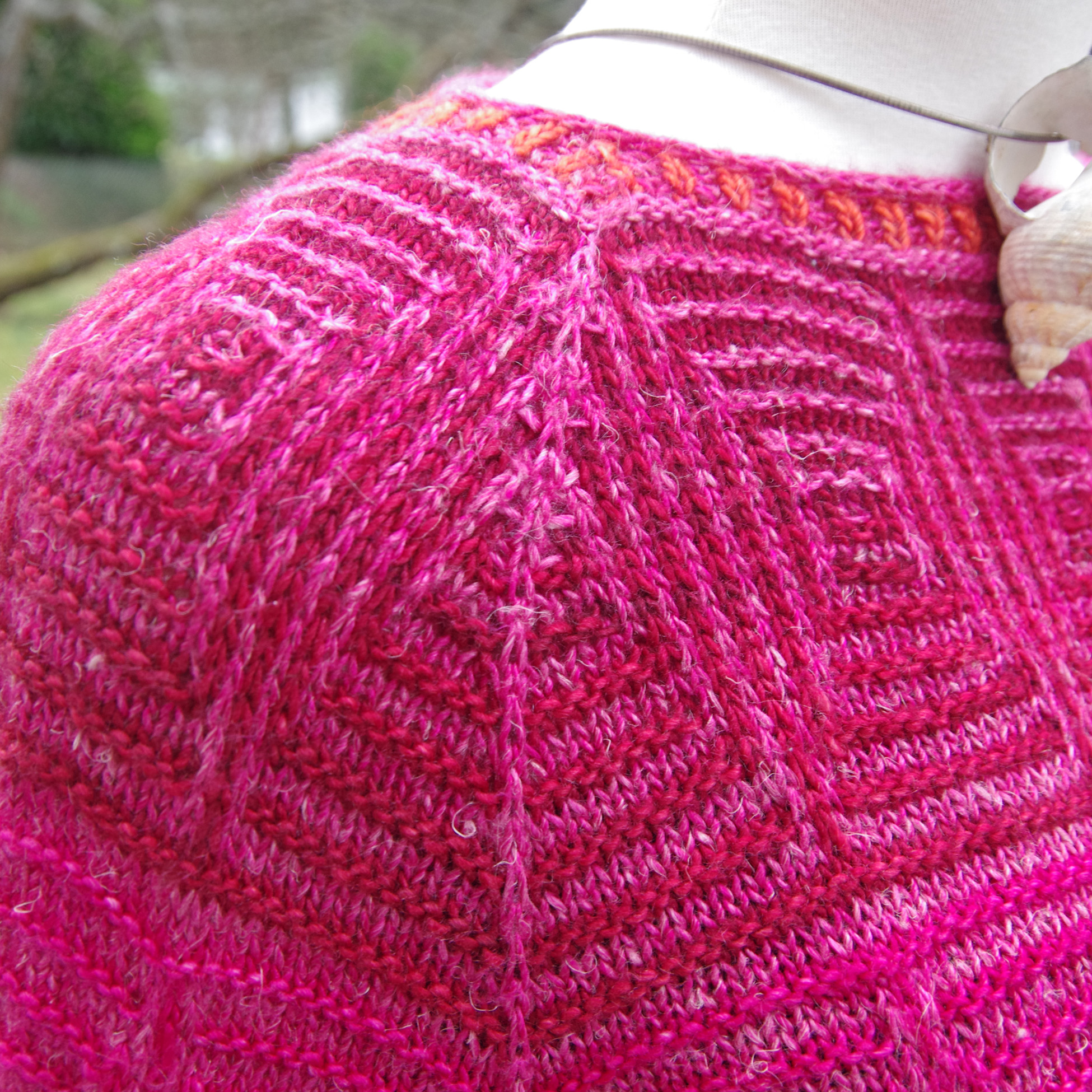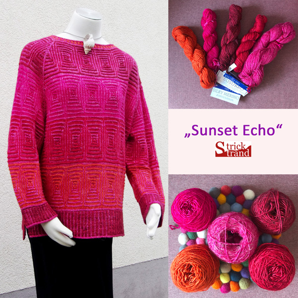 Oberteil: „Sunset Echo“ in Größe M/L – Silky Merino & Susurro – Raglan, Schlitze, lange Ärmel – Rottöne