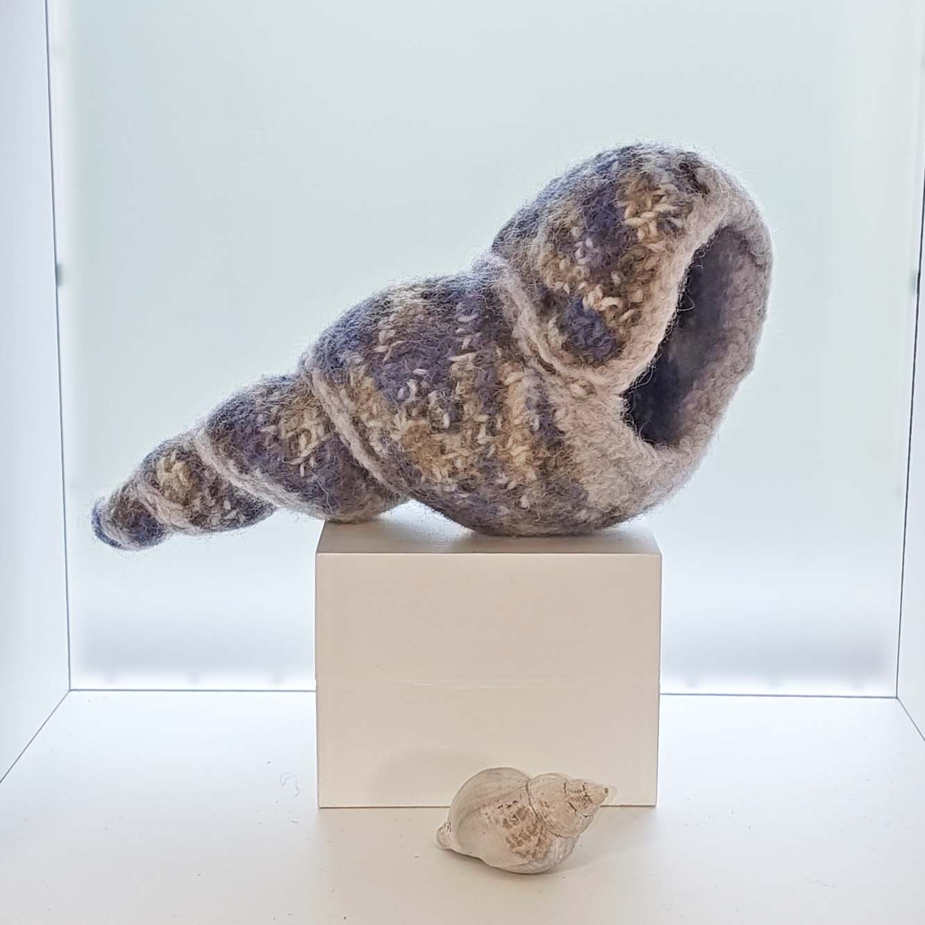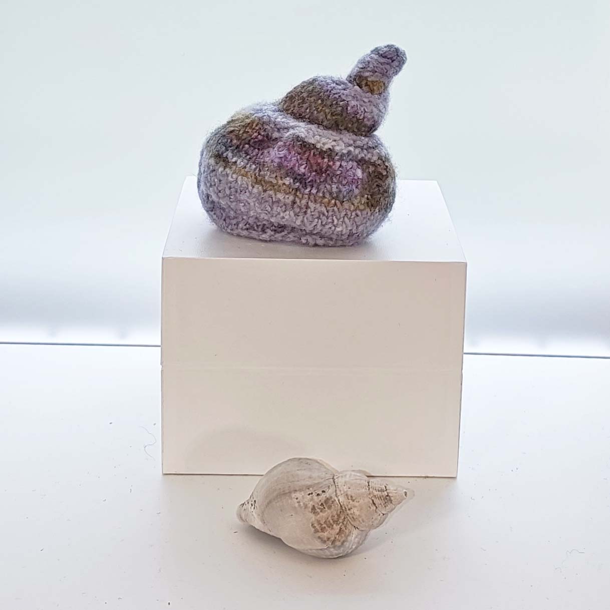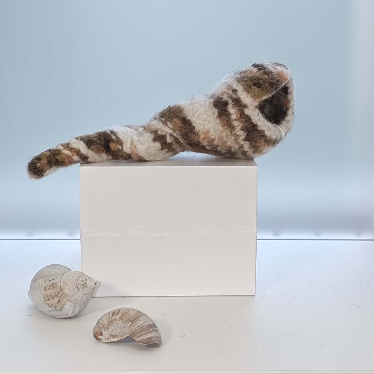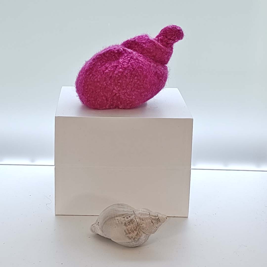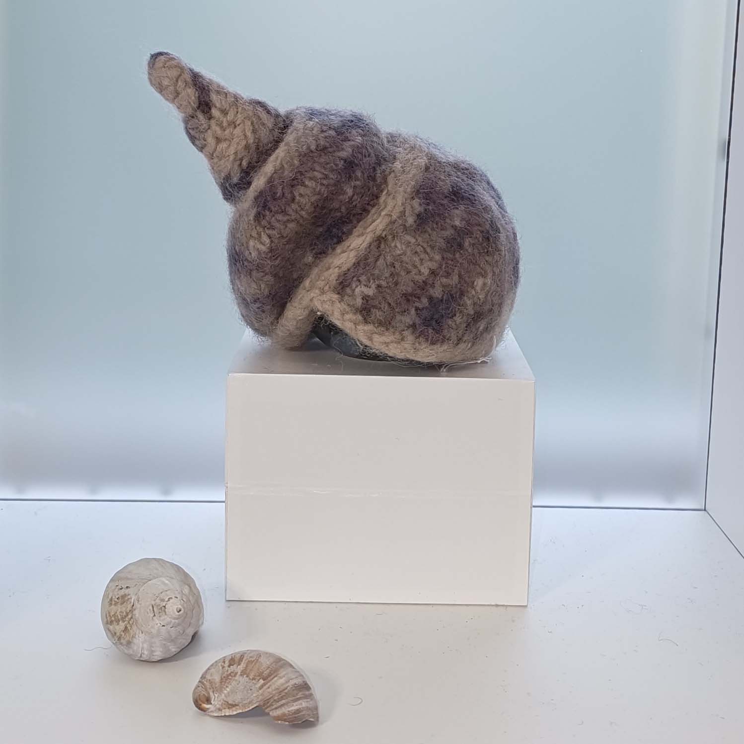Für die Ausstellungen habe Euch einige „Buccinidae & Turritella“ (Wellhorn- und turmförmige Schnecken)“ gestrickt – in der Größe vom wunderbaren kleinen Handschmeichler oder kleinen Deko-Objekt in Größe XS, über Eierwärmer zu größeren kuschligen Schmückern. Einige passen auch in einen Bilderrahmen, wie Ihr das bei den Lana Cochlea an anderer Stelle sehen könnt.