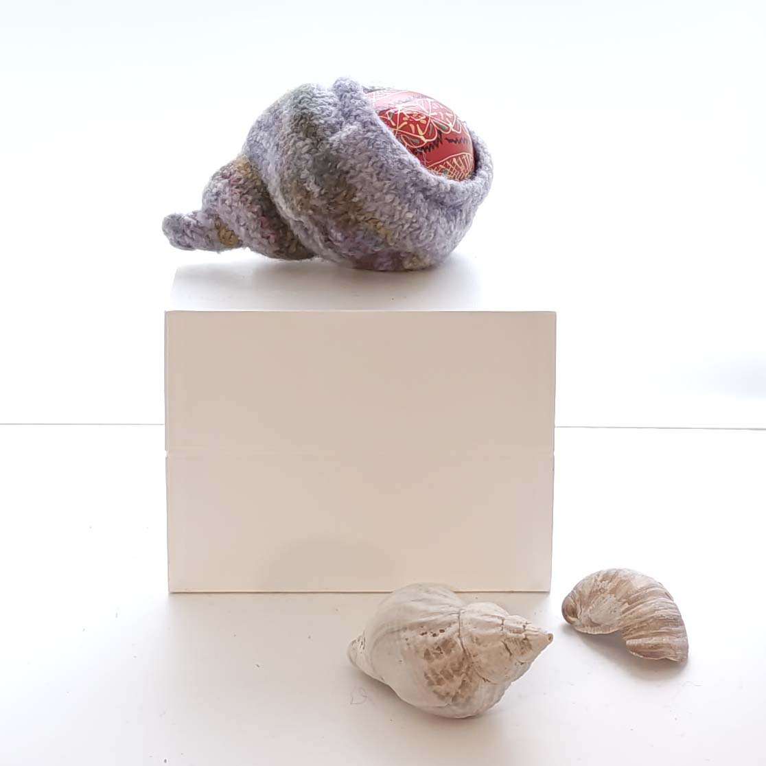 Raumobjekt: „Mini-Spiralschnecken“/ StrickStrandDesign – Eierwärmer – (allerkleinste) StrickStrand Schneckenskulptur – XS/M/L/XXL (Kopie)