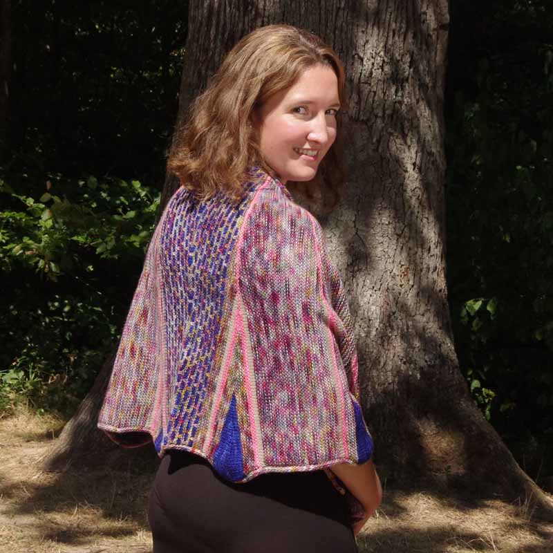 Das Stricken selbst ist nicht schwierig: allerdings ist dies ein Schal in vielen Farben. Für die Details habe ich mich entschieden ihn so zu stricken, dass ich leider immer wieder zahllose Maschen ungestrickt abheben musste, dass die Farbwirkung nun ist wie sie ist. Die Hälfte des Schals ist Glatt und Kraus Links zu stricken. Bei solchen Schals lasse ich mir viel Zeit beim Verwahren der Fäden auf der Rückseite. Das ist eine langwierige Arbeit: die unzähligen abgeschnittenen Fädchen ergeben irgendwann eine Füllung für eine Kissenhülle.