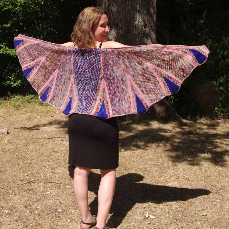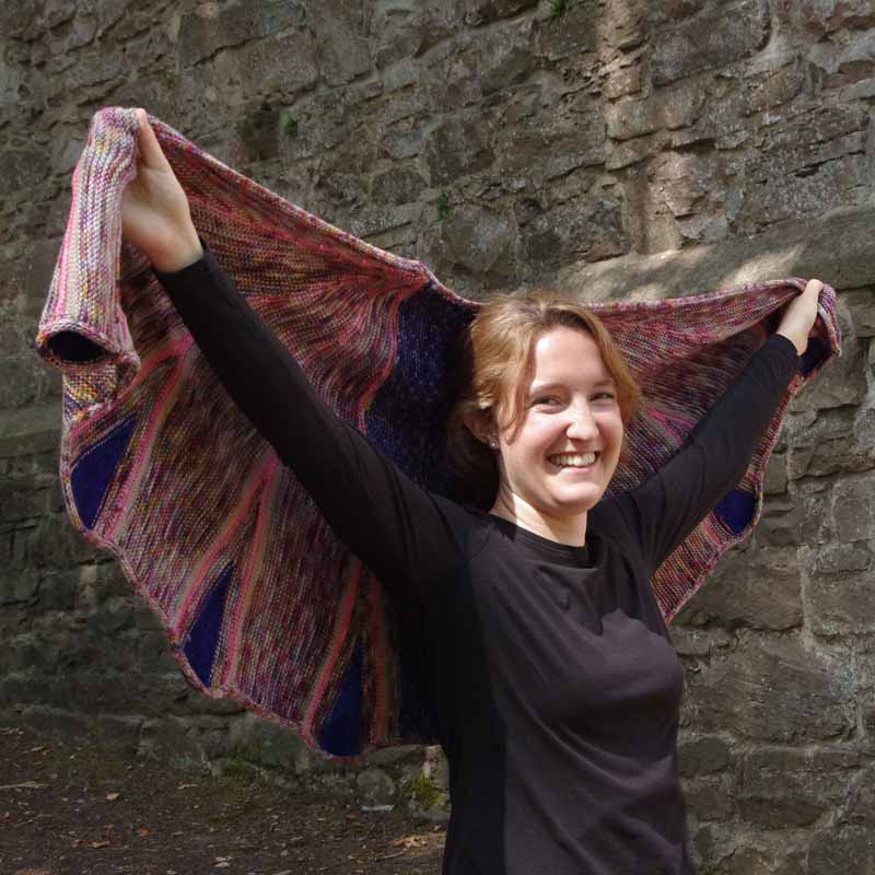 Der wärmste Schal und der mit dem größten Gewicht meines Sortiments: ein Schmetterling (bzw Schwärmer), den man sich wie eine sehr kuschelige und dekorative Decke umlegen kann. Trägst Du ihn als Umhang, eignet sich eine Schalnadel gut als Verschluss.