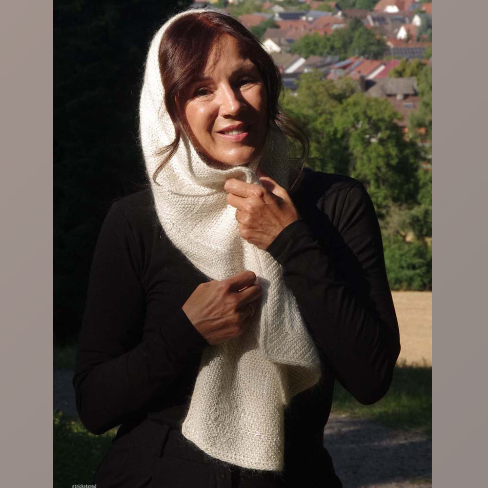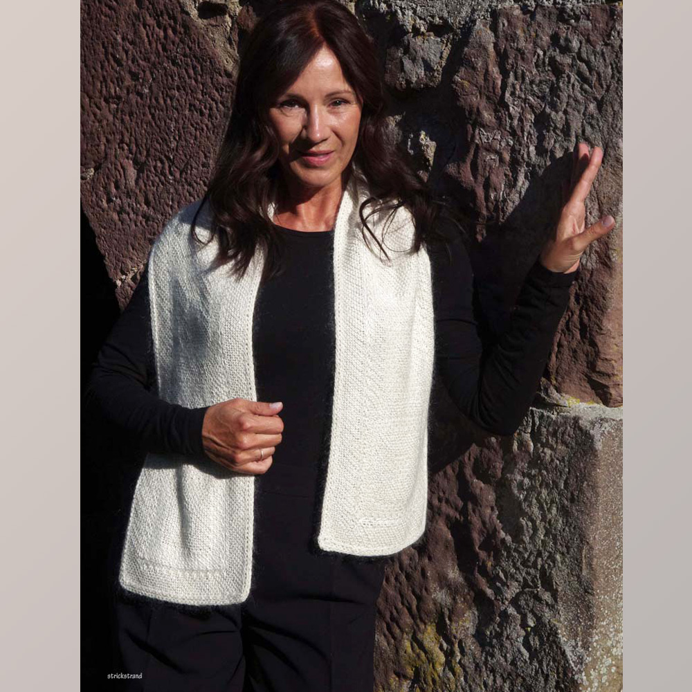Schal: „Chiaras Diamant“ – rechteckiger Schal / StrickStrandDesign – Maulbeer- und Bouretteseide, etwas Mohair – weiß