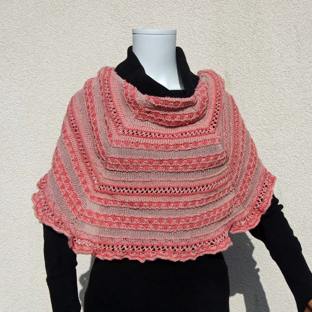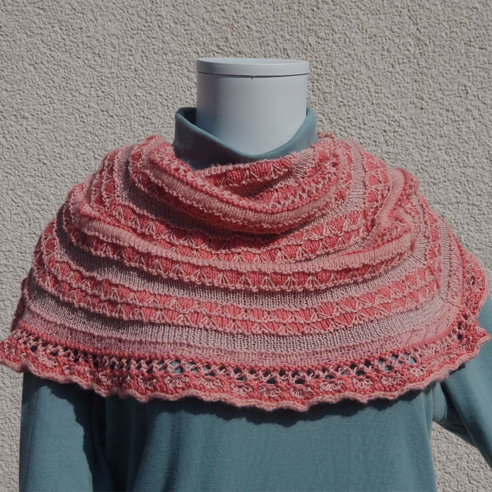 - Bei den „Ton in Ton“ farbenen Varianten spiele ich mit Glanzeffekten und Oberflächenkontrasten bei nur einer Grundfarbe: da habe ich meine Serie von Schals in „Edelsteinfarben“ fortgesetzt. Zu diesen Schals gibt es einen Blog-Artikel mit vielen Fotos.