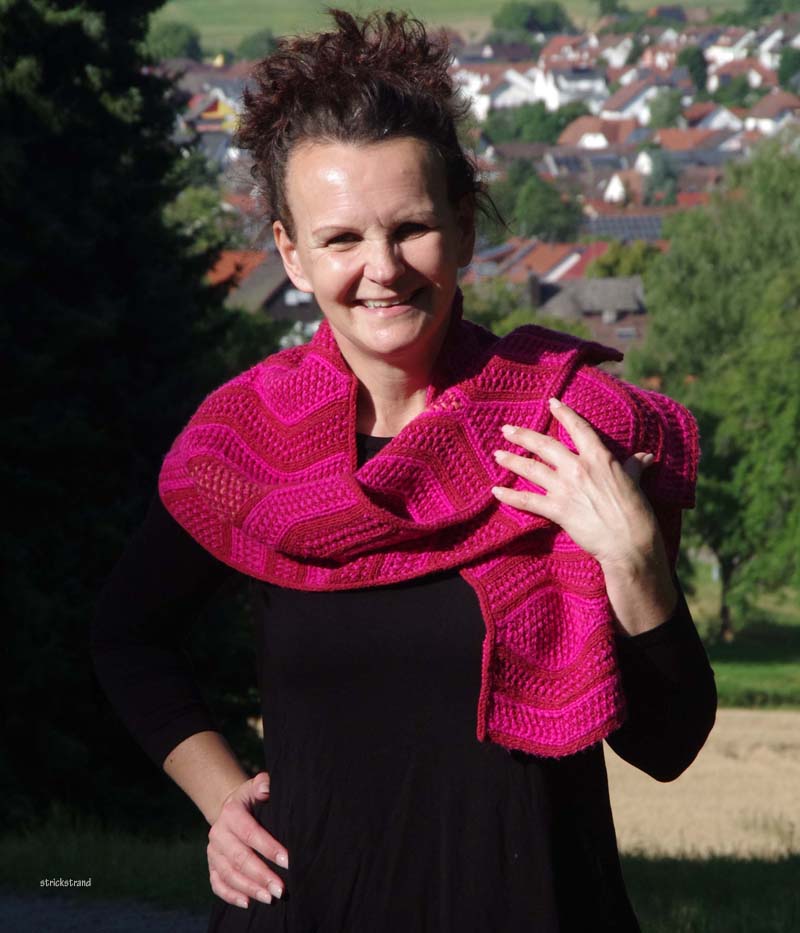 Schal: „Pink Waves“/ StrickStrandDesign – „Doublesided Nubes“ – doubleface Technik – hell & dunkel auf jeder Seite – tierhaarfrei – pink/ rot