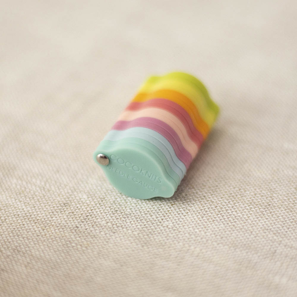 Strickzubehör: Cocoknits „Needle Gauge“ – Nadelmaß – platzsparend mit bunten Plättchen (pflanzlich basiert)