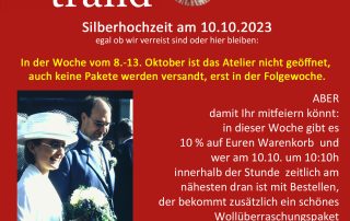 Jubeltag Rabattaktion – Silberhochzeit – keine Lieferung zwischen 8. und 13. Oktober